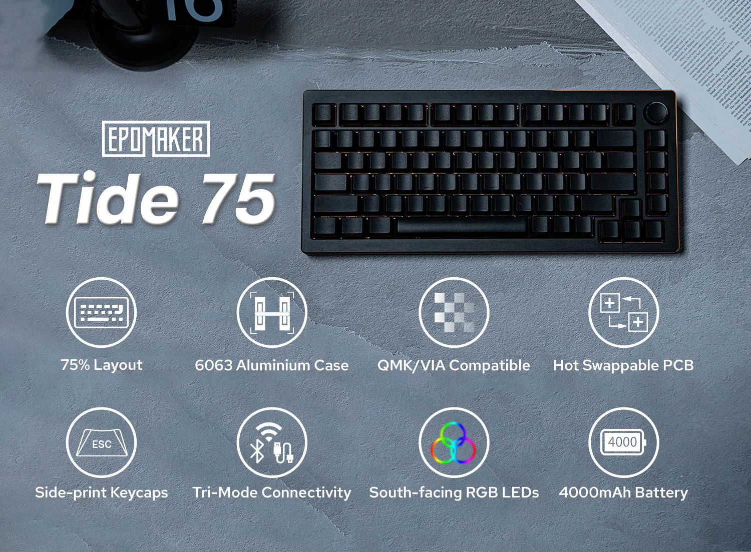 EPOMAKER Tide75 QMK/VIA 75% 핫 스왑 가능 무선 블루투스, 2.4Ghz/USB-C 알루미늄 기계식 게이밍 키보드, Win/Mac용