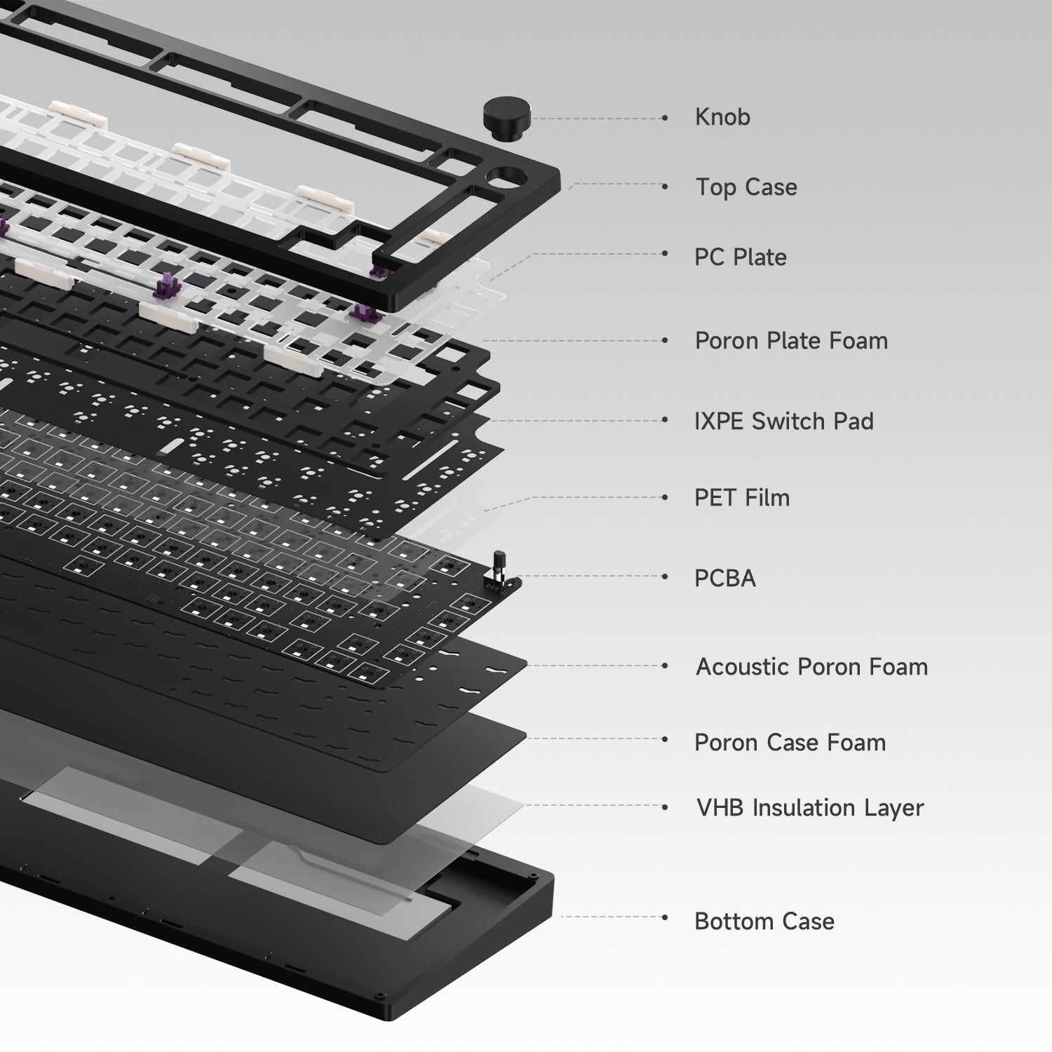 MonsGeek M1 V3 QMK DIY 키트에는 PORON 플레이트 폼이 장착되어있어 키 스위치에서 발생하는 소음을 효과적으로 줄여 키보드에 대한보다 순수하고 편안한 촉각 사운드 경험을 보장합니다.